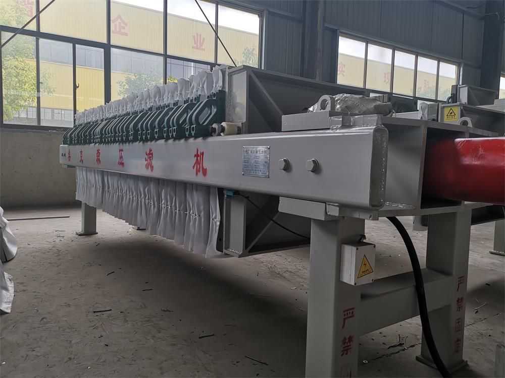 密封式板框壓濾機,密封性能好,內嵌式濾布,濾板四周鑲嵌密封條。進料過程中不會隨著濾布有滴水現象。